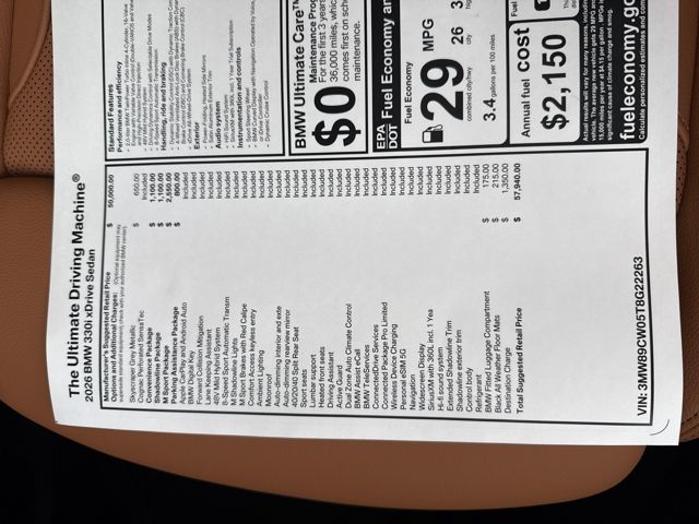 2026 BMW 3 Series 330i xDrive AWD. 26/34 City/Highway MPG