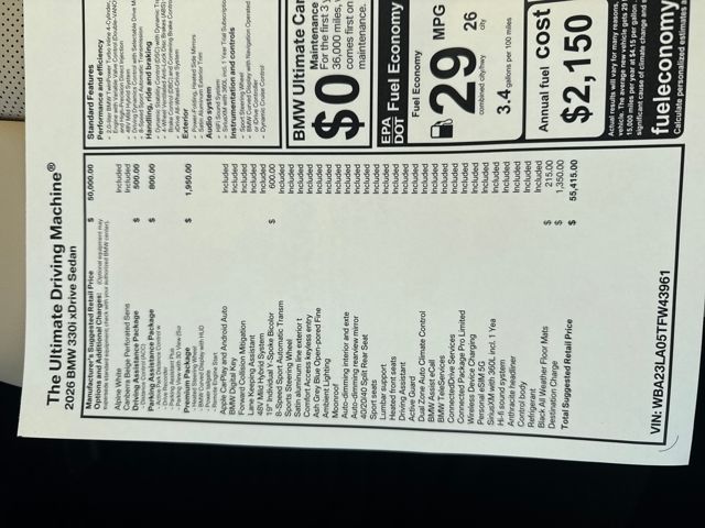 2026 BMW 3 Series 330i xDrive AWD. 26/34 City/Highway MPG