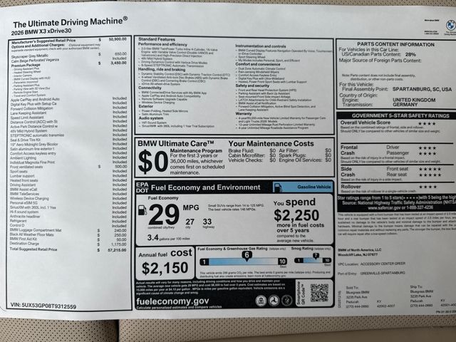2026 BMW X3 30 xDrive 8-Speed Automatic. 27/33 City/Highway MPG