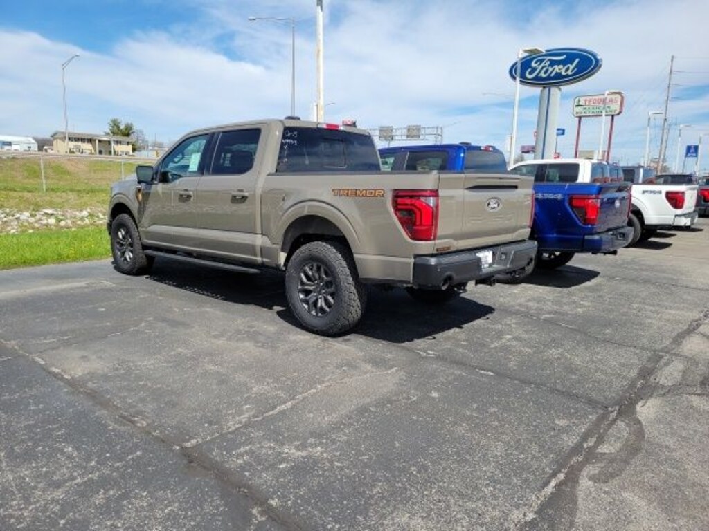 2026 Ford F-150 Tremor 5.0L V8, Backup Camera, Bluetooth, 8 Speakers, Adjustable pedals, AM/FM radio: SiriusXM with 360L, Auto High-beam Headlights, Auto-dimming Rear-View mirror, Automatic temperature control, Bumpers: body-color, Ford Connectivity Package (1-Year Included), Front dual zone A/C, Front fog lights, Fully automatic headlights, GVWR: 7,050 lbs Payload Package, Heated door mirrors, Heated front seats, Illuminated entry, Internet access capable: 5G Modem - Ford Connectivity Package, Navigation system: Connected Navigation, Outside temperature display, Overhead console, Power driver seat, Power passenger seat, Radio: B&O Sound System by Bang and Olufsen, Rear step bumper, Remote keyless entry, Steering wheel mounted audio controls, SYNC 4 with Enhanced Voice Recognition, Telescoping steering wheel, Tilt steering wheel, Wheels: 18" Alloy with Dark Matte Finish.