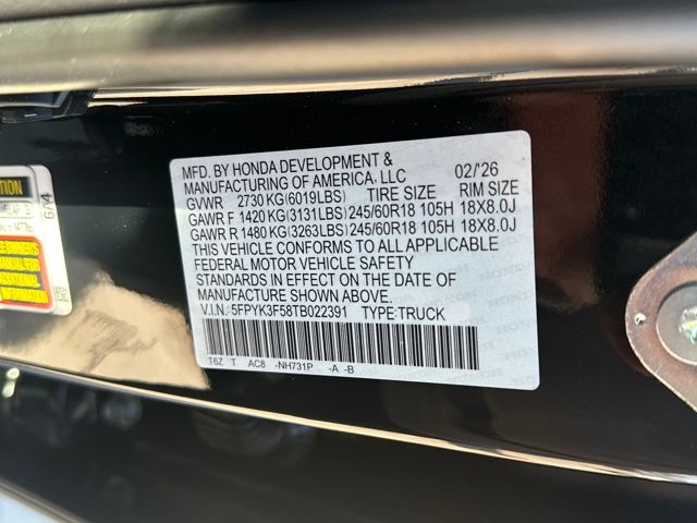 2026 Honda Ridgeline RTL Nh-731p/Black Leather.