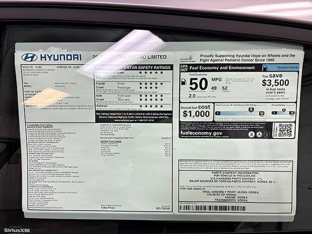 - Fuel economy combined: 50mpg